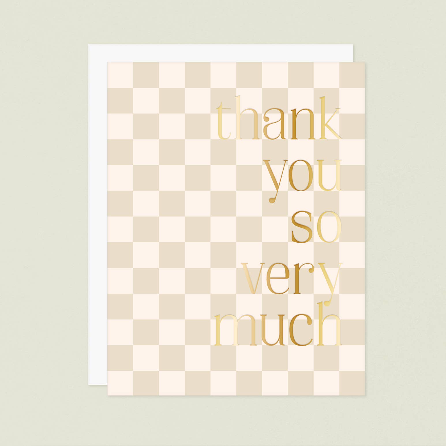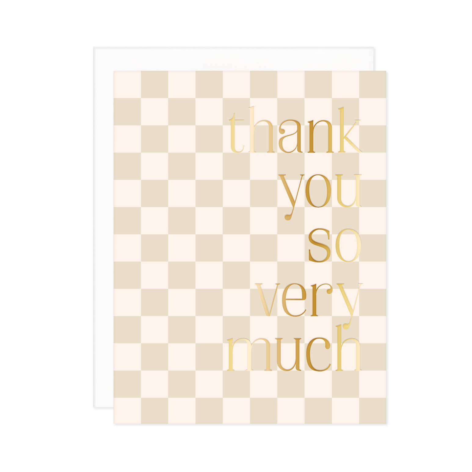 Our of-the-moment checker print Thank You So Very Much card features gold foil paired with neutrals.