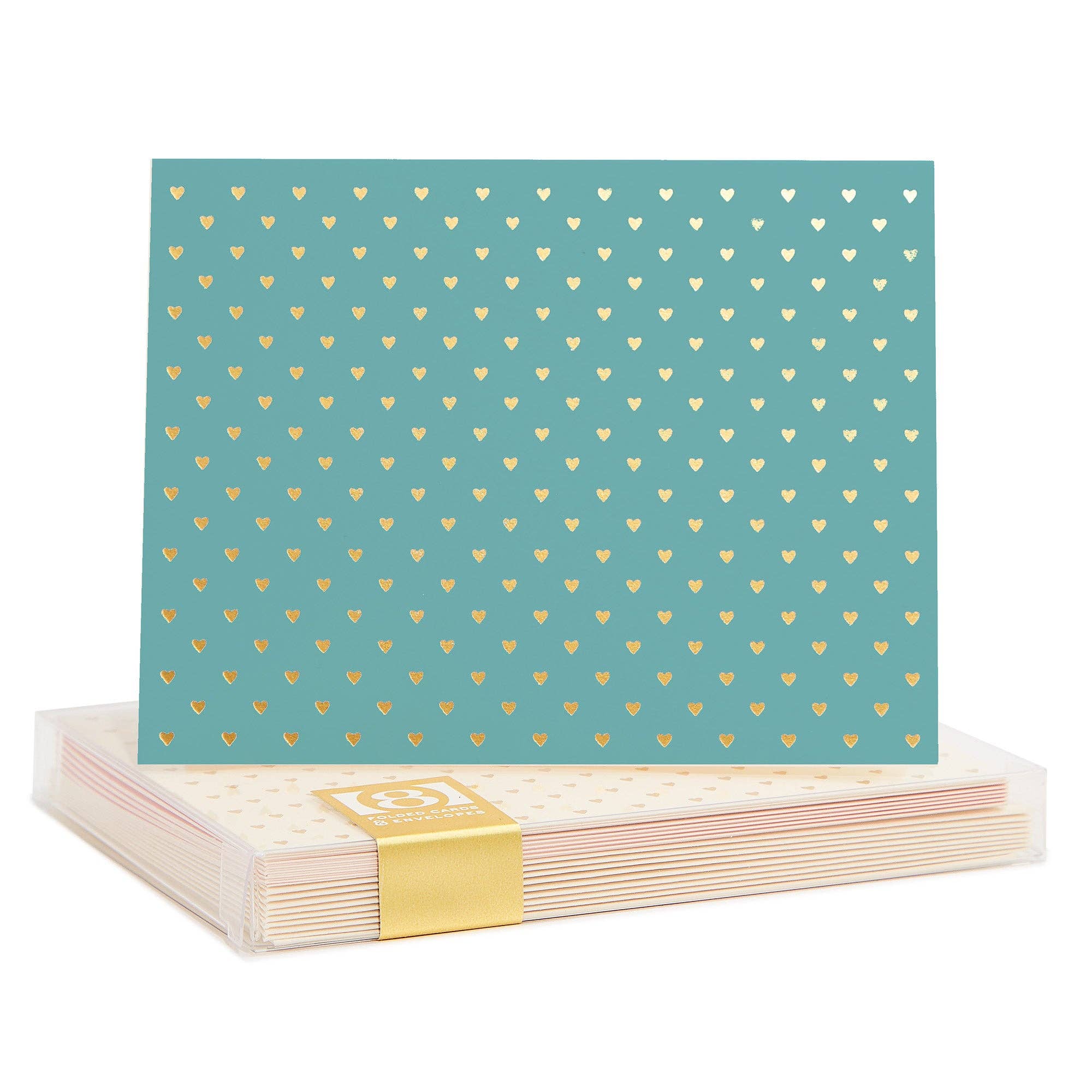 A lovely combination of offset printing with hints of delicate gold foil stamping throughout. Card measures 4.25 x 5.5 inches.