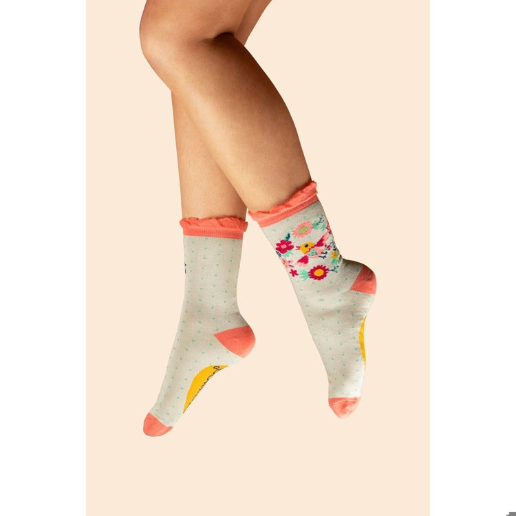 {Powder} Women's Bamboo Ankle Socks :: Tweety Wreath