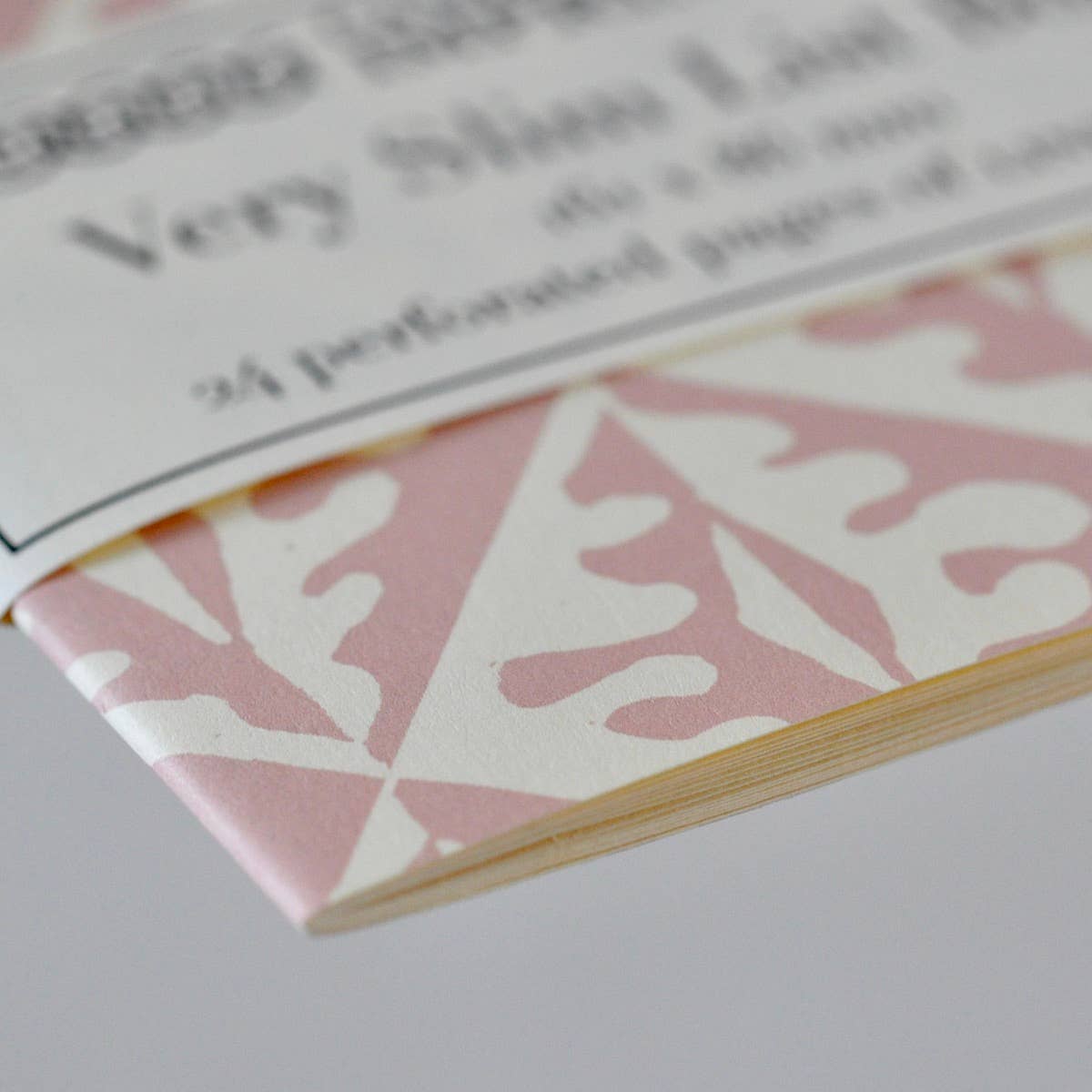 This Very Slim List Book is so light you won't know you're carrying it. A handy size for slipping into your bag, for keeping notes or making lists. 24 pages of good quality ivory paper with an elegant narrow line, with perforations so the page can easily be torn out.