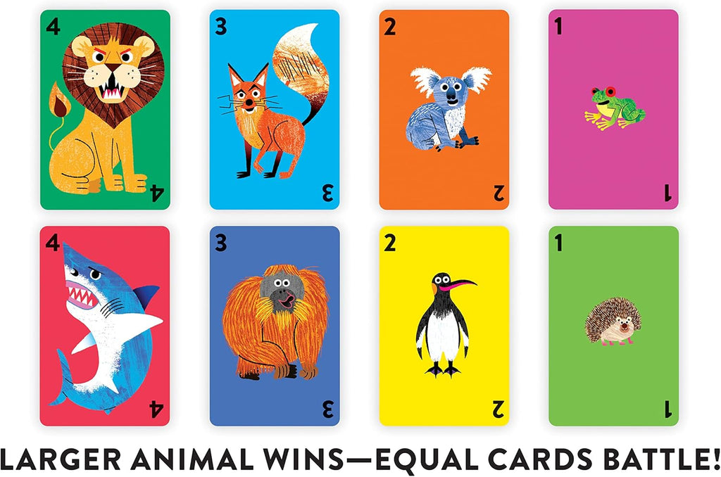 Wild King! Playing Cards introduces children ages 4 and up to a fun and simple card game, based on the classic game of War. Players compete to win cards with each round, using strategy and luck. The vibrant, playful illustrations on every card feature wild animals and add an extra layer of excitement to the game. With its easy-to-understand rules and colorful designs, this game is an engaging way to teach kids how to play card games.