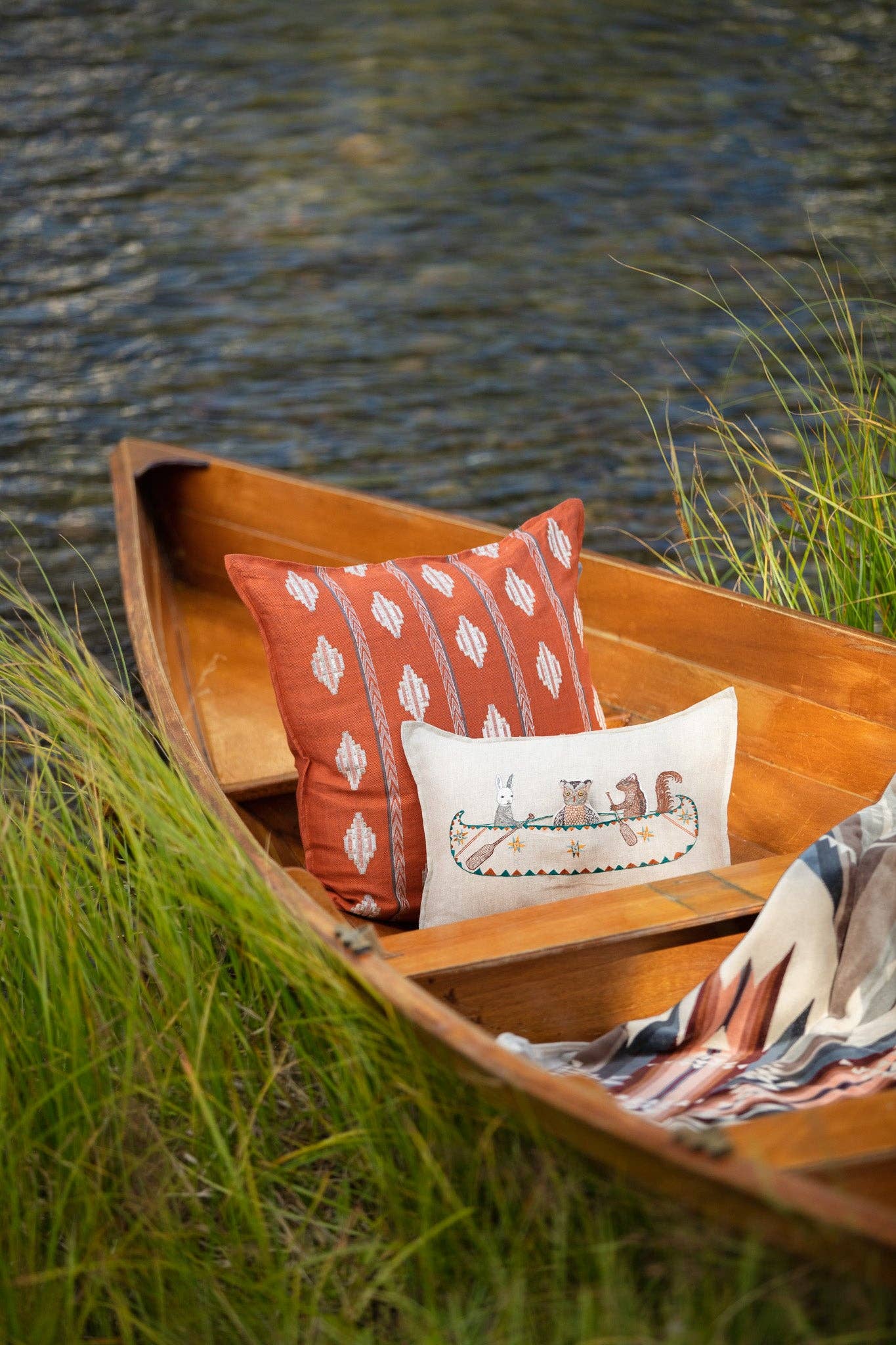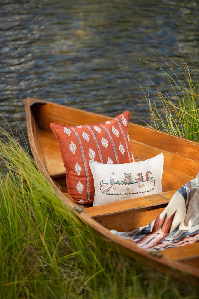 Inspired by the wooden canoes found at Camp Topridge in The Adirondacks, these three friends are ready to paddle out! In case bunny and chipmunk cause the canoe to topple, Owl's ready to take flight!