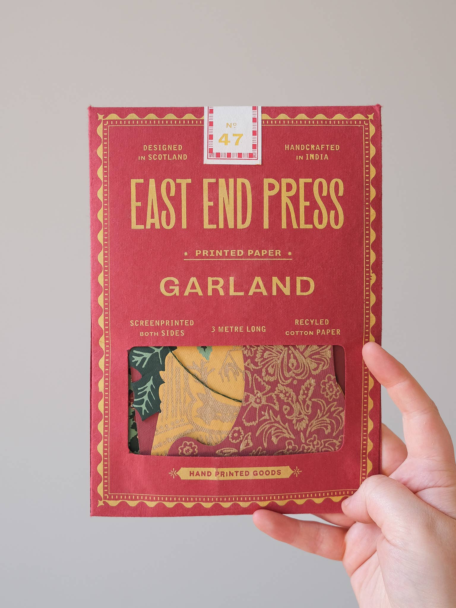 This is a true traditional Christmas garland, with all the favourite festive images and scenes; Christmas trees, stockings, presents and bells.