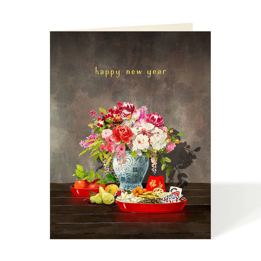 Bring on the good luck and prosperity! Flowers, pears, citrus, sweet candies, and red envelopes for lucky money are sure to bring a happy start to a charmed new year. Printed on a beautiful stock, Occasion Cards feature Felix's watercolor drawings and his handwritten font. The quality envelope is the finishing touch.