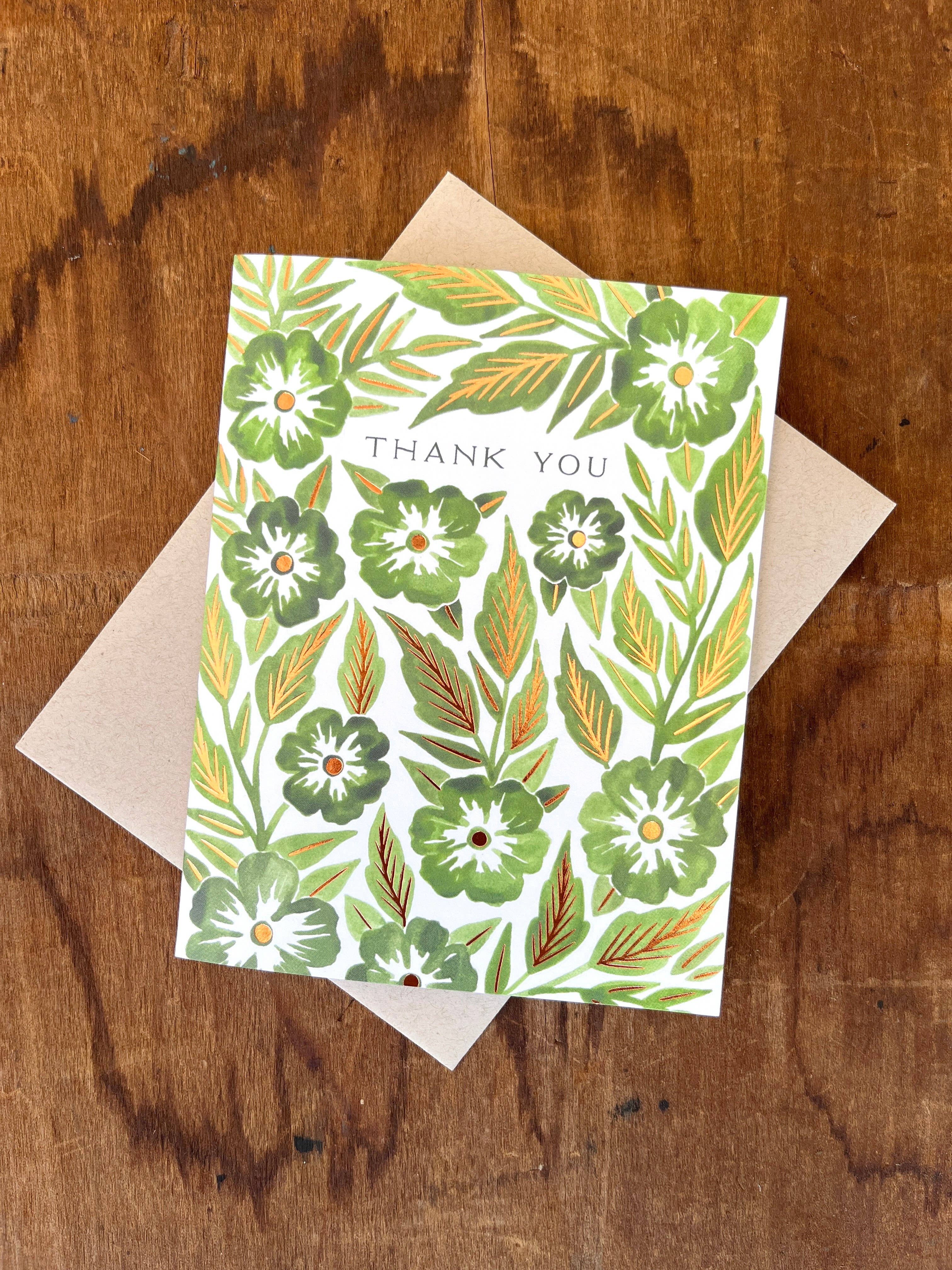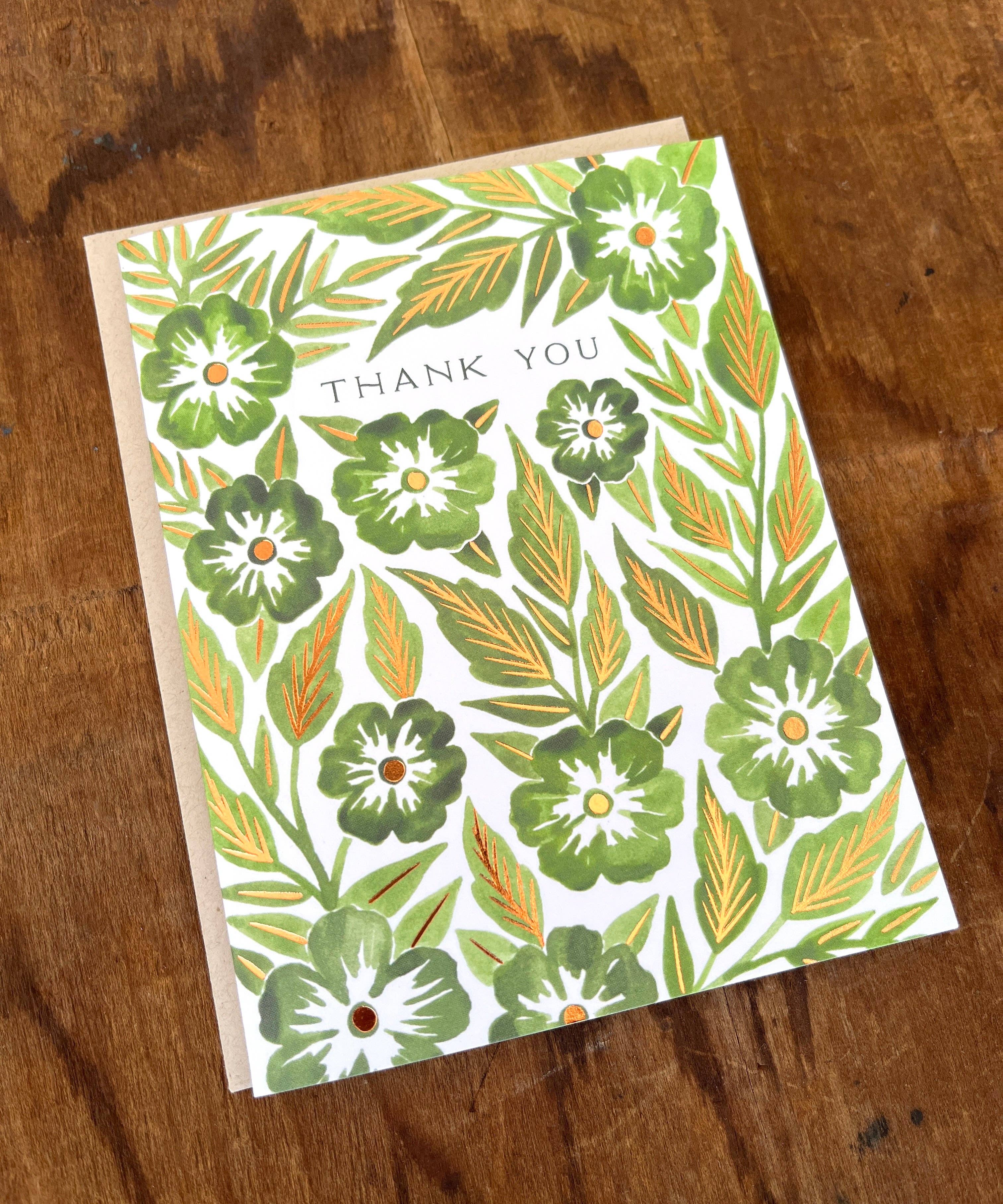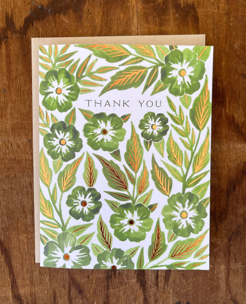 {Katharine Watson} Green Flowers Thank You Card :: Foil Stamped is backordered. It will be shipped when back in stock.
