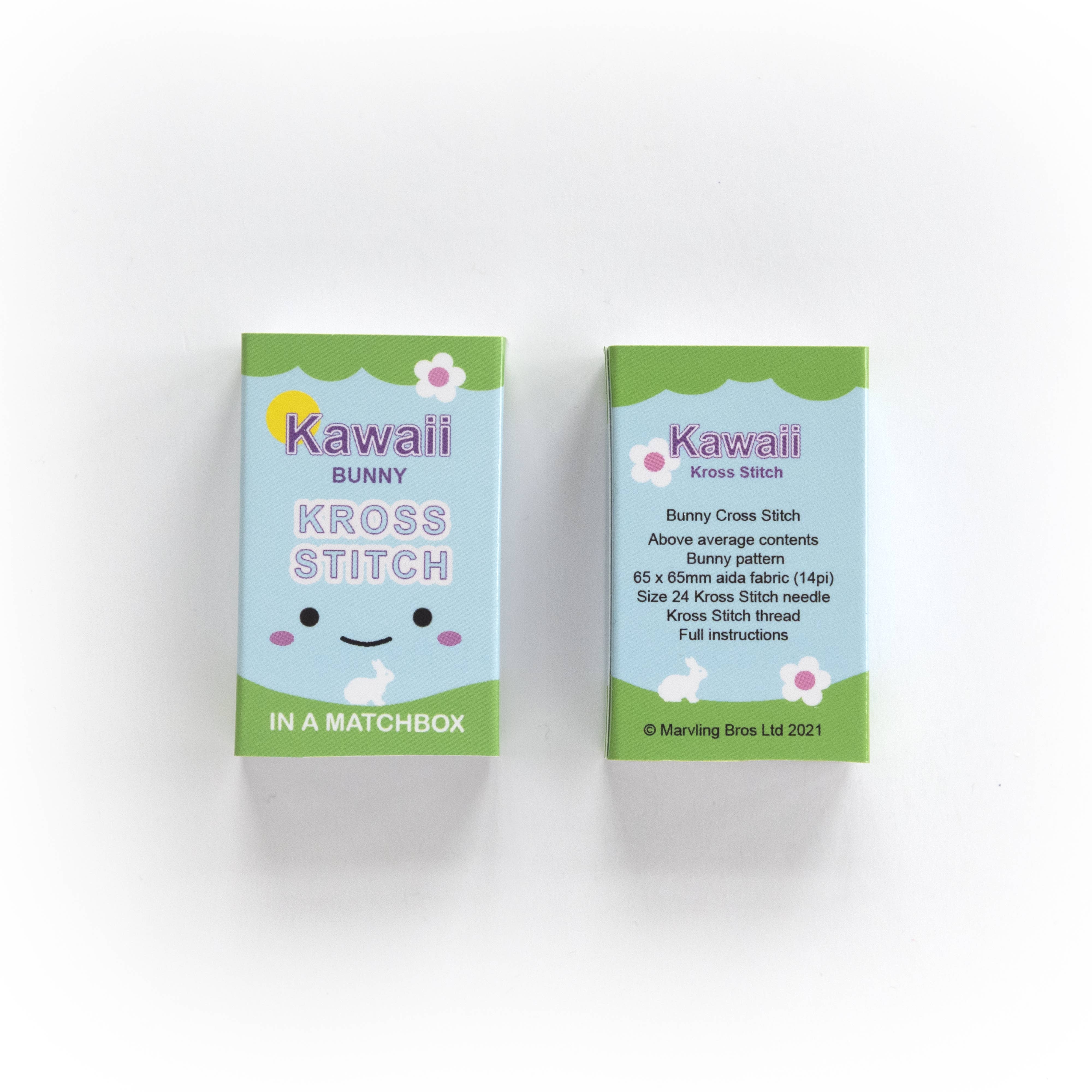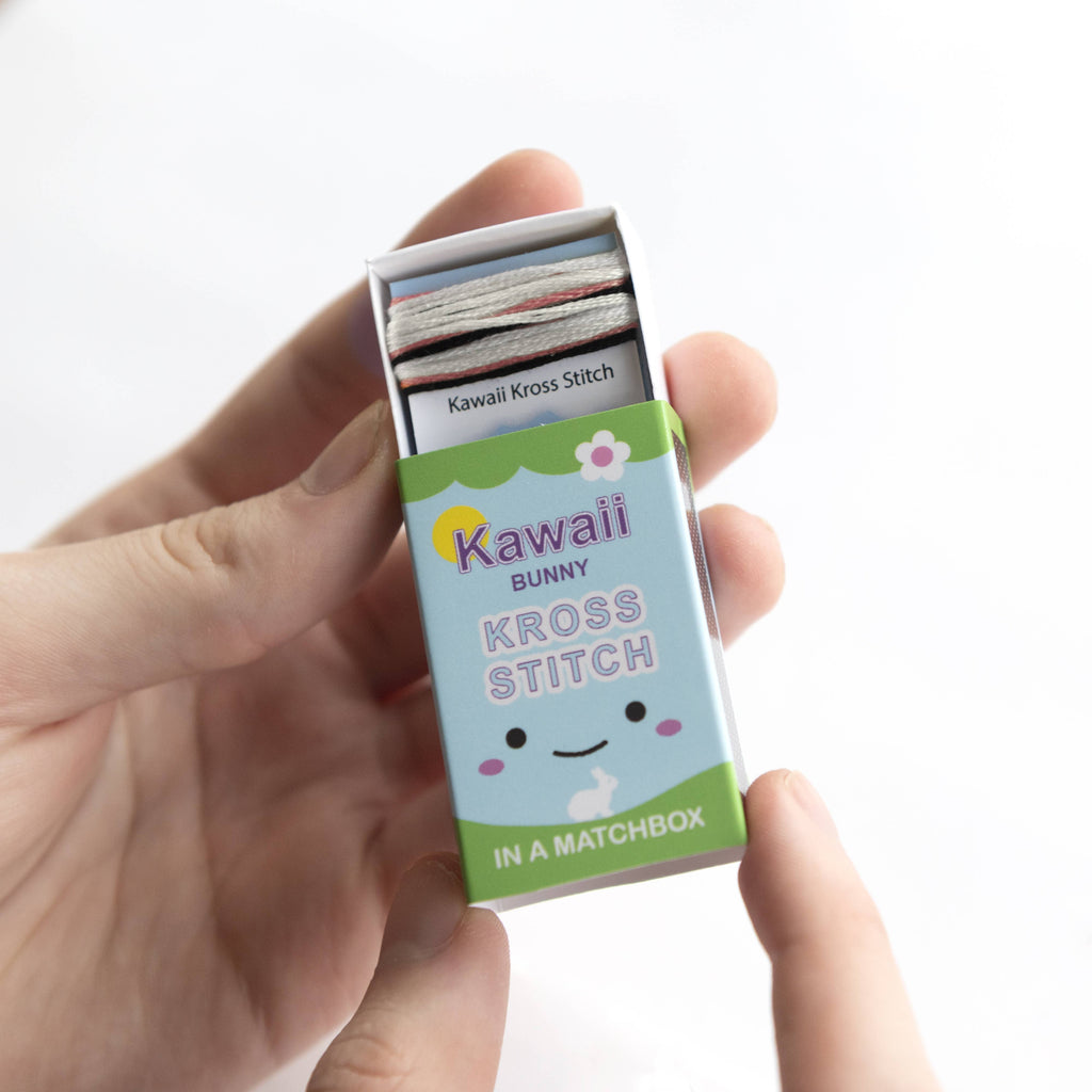 A super cute cross stitch kit, with a bunny rabbit pattern perfect for beginners or enthusiasts wanting a quick fun project. Everything you need to make this mini Kawaii style bunny rabbit cross stitch pattern is packed neatly into this matchbox. With easy to follow instructions, this gift is sure to delight any enthusiast or entice a newbie into the wonderful world of cross stitch.