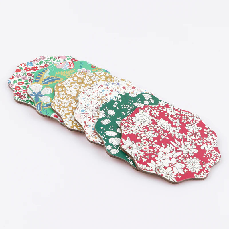 • 6 Coasters each with a different festive Liberty floral or star print