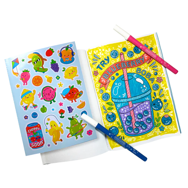 Whether they’re coloring, sticking, or sniffing (yes, sniffing!), kids will have a blast creating masterpieces on the go. Designed for travel, the clever carrying case keeps everything organized and ready for wherever inspiration strikes—road trips, restaurants, or rainy days at home. Non-toxic and full of fun, this coloring set is the ultimate boredom buster with a splash of fruity flair. It’s time to stick, sniff, and color your way to crafty greatness!