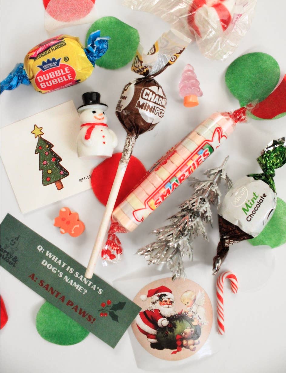 These vintage inspired small batch deluxe bon bon surprises are not only adorable but they're a blast to unwrap all of the little goodies hidden inside! Each bon bon tube is filled with an assortment of retro inspired sweets, stickers, favors, toys, temporary tattoo, silly joke or fortune and confetti.