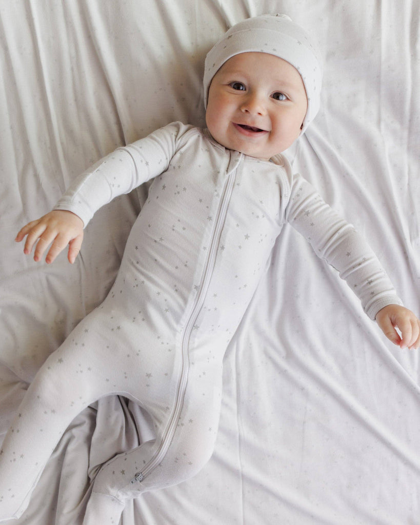 Made from our new responsibly sourced TENCEL™ Modal fibers for long-lasting softness, your baby will love. These fibers are EU Ecolabe*l certified and can break down and compost at the end of their lifecycle^. This exceptionally soft, breathable, and durable material offers luxurious, lightweight comfort for your little ones. Featuring our ‘stars’ print on our ‘fog’ hue.