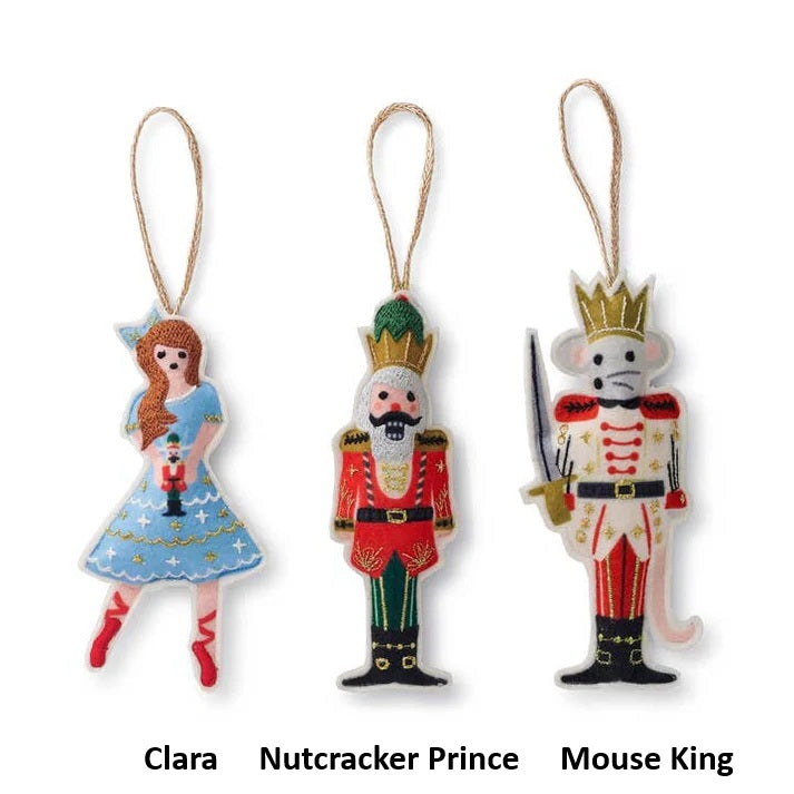 Our favorite Nutcracker characters, crafted from felt and ready for your tree. Available in three styles (sold separately): Clara, her Nutcracker Prince, and their foe, the Mouse King.